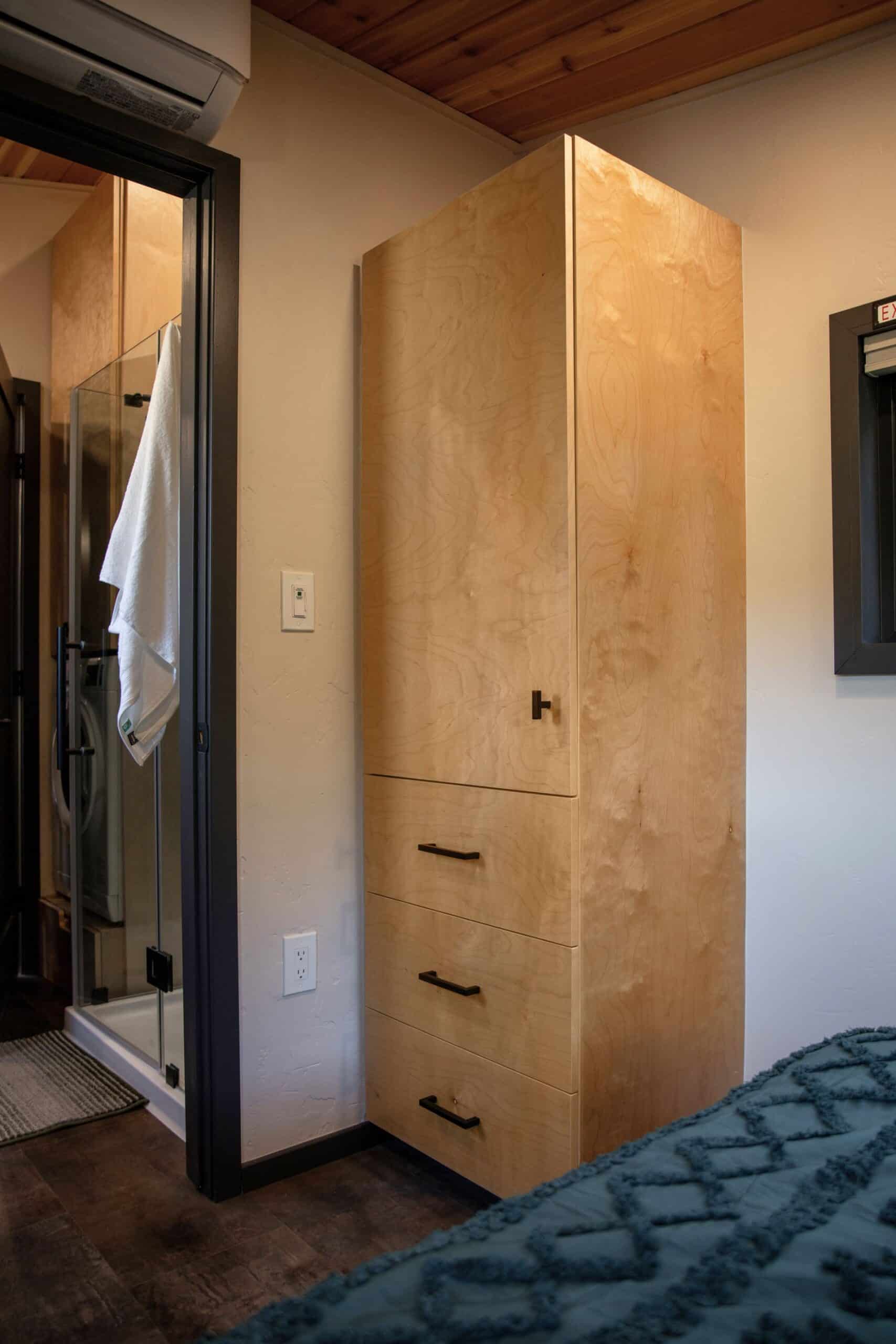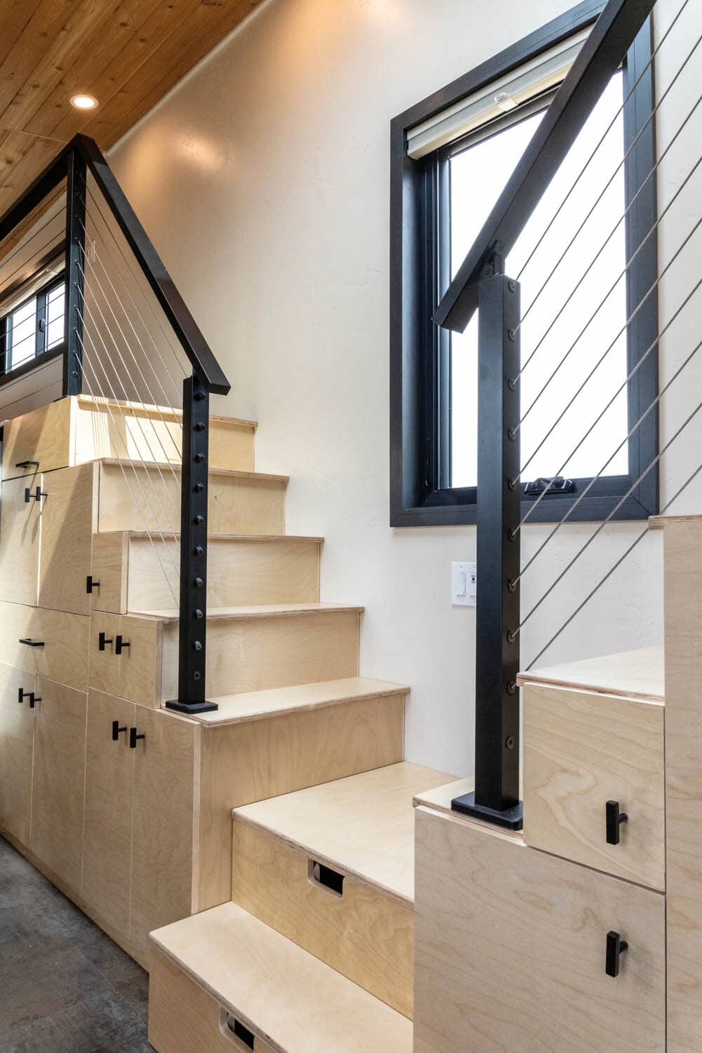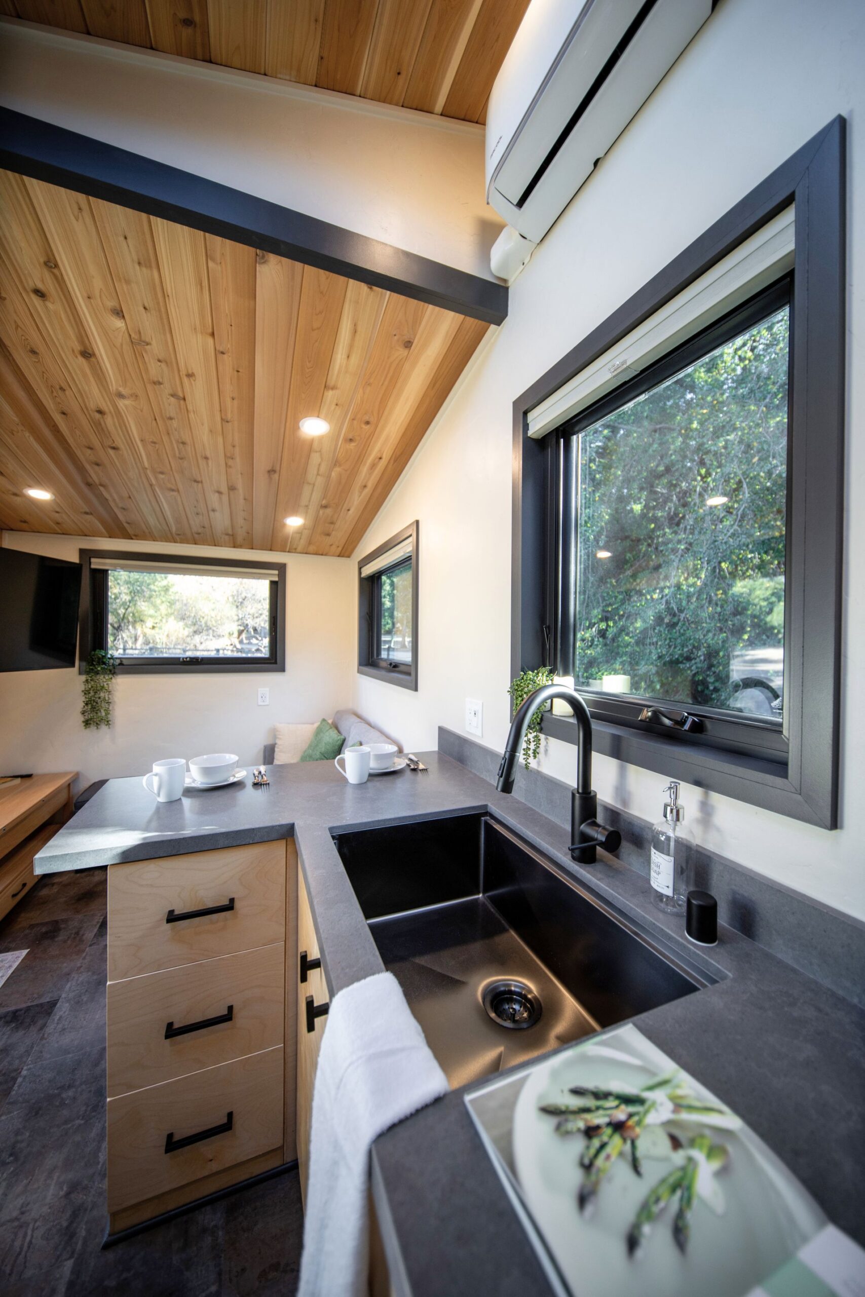 This beautifully built luxury movable tiny home is perfect for you and your partner, with plenty of room and storage to reach your life objectives. Maximizing space, the dual loft configuration offers a luxurious sleep haven with a comfortable queen bed on one side and a bonus area or additional storage on the other side. The spacious feel and versatility of the Cadence will have you wondering why you ever lived differently!