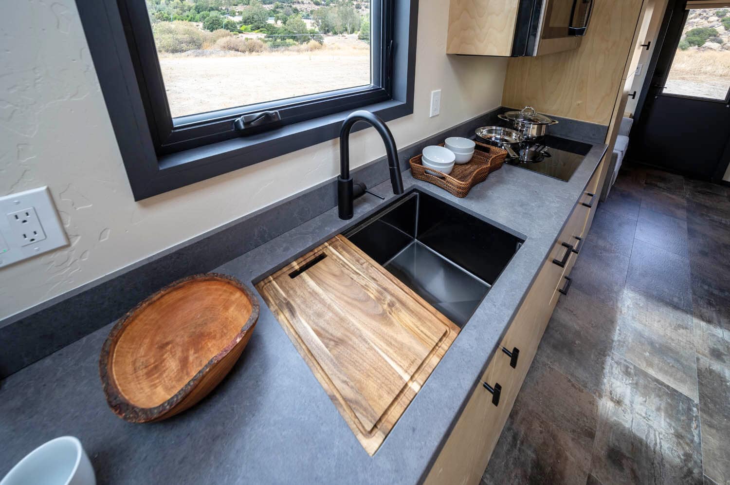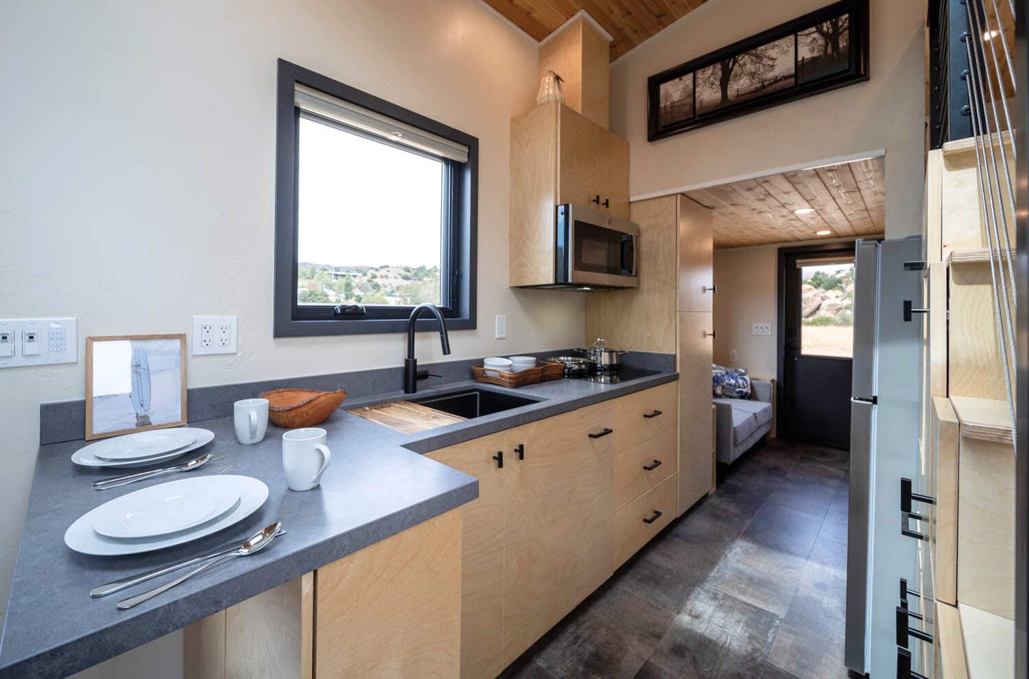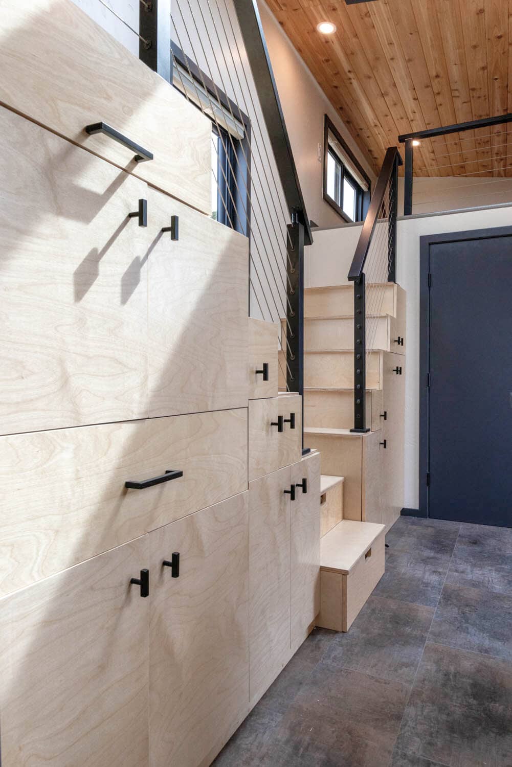 This beautifully built luxury movable tiny home is perfect for you and your partner, with plenty of room and storage to reach your life objectives. Maximizing space, the dual loft configuration offers a luxurious sleep haven with a comfortable queen bed on one side and a bonus area or additional storage on the other side. The spacious feel and versatility of the Cadence will have you wondering why you ever lived differently!